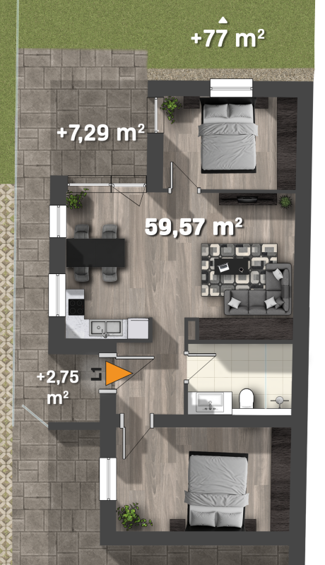 + terasz (7,29 m²)