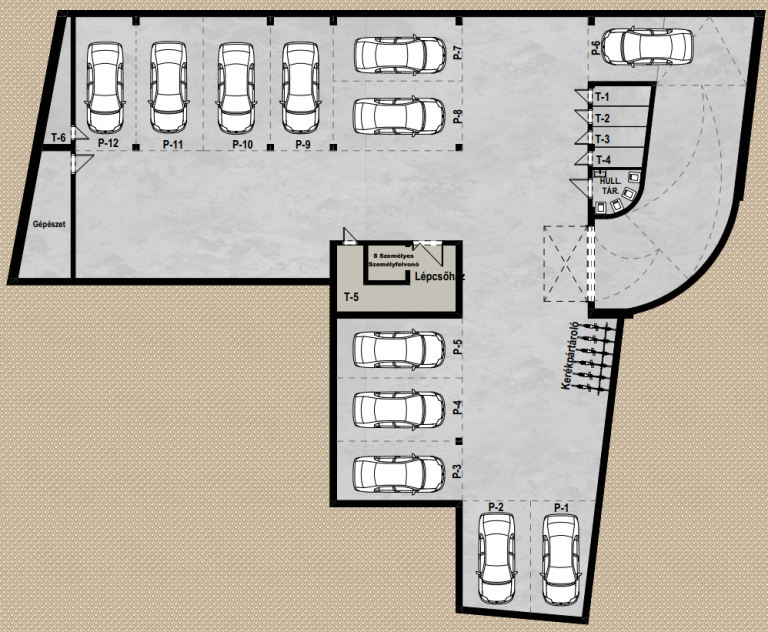 Pinceszinti mélygarázson belül privát parkolóhelyek és tároló egységek kerültek kialakításra, melyek külön megvásárolhatóak.