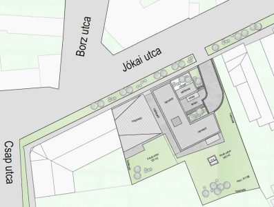 párhuzamos Jókai utcában helyezkedik el, ahol az épület előtt a parkolás sem