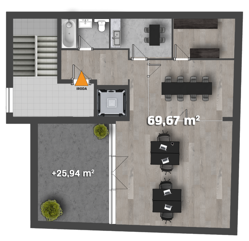 69,67 m2 + 25,94 m2 terasz